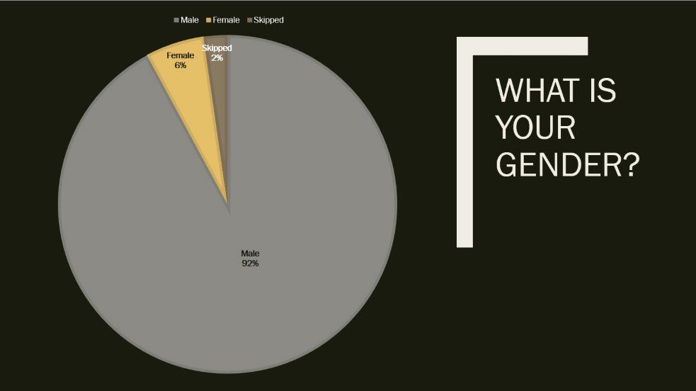 Nonostante la software house californiana si aspettasse una maggioranza maschile, non prevedeva una risposta così sbilanciata. Il 92% dei partecipanti al sondaggio è di sesso maschile.