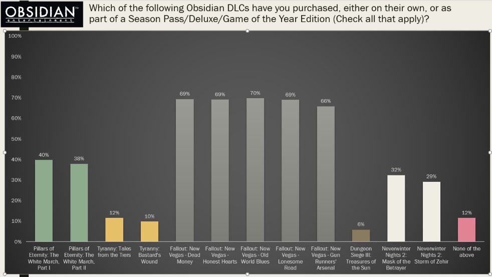 I ragazzi di Obsidian Entertainment, software house californiana famosa per titoli come Pillars of Eternity, Tyranny e Fallout New Vegas, hanno ben pensato di creare un sondaggio atto a rispondere ad una semplice domanda: Cosa pensano gli utenti dei DLC?