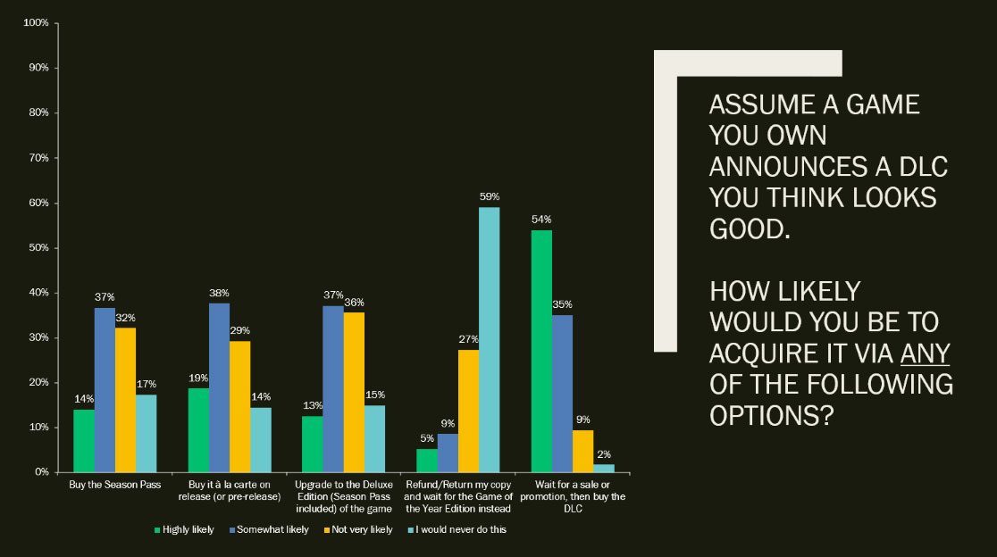 La maggior parte degli utenti ovviamente acquisterebbe un titolo, se venissero annunciati contenuti gratuiti per esso. Una piccola percentuale, tuttavia, non ama i DLC.