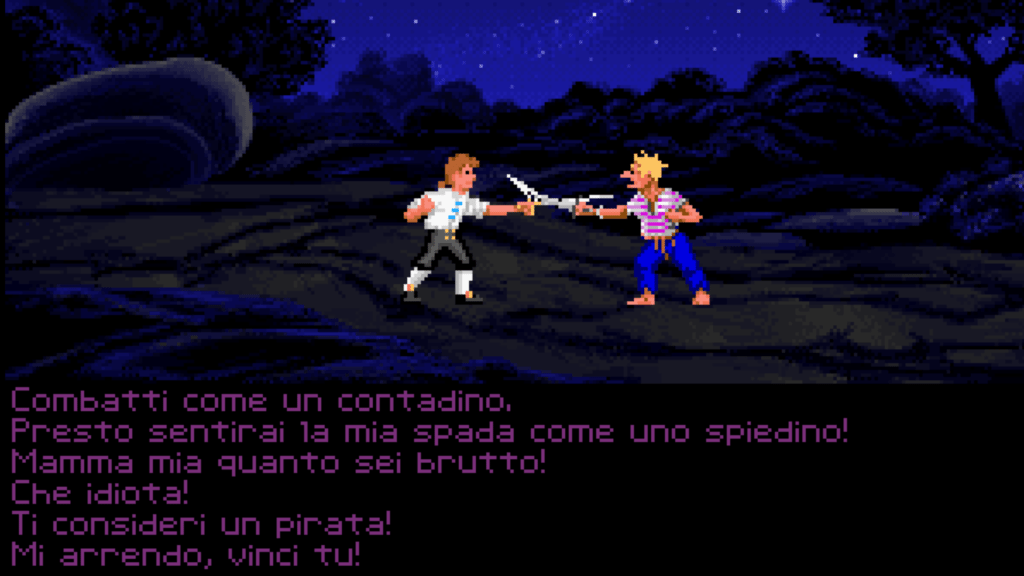 Altro dettaglio, sicuramente non da poco, è il fantastico lavoro fatto con i personaggi. Ogni protagonista infatti ha un carattere ben delinato e, nelle proprie assurdità, assolutamente coerente con se stesso. Guybrush non si può non amare nelle sue sfortune, nel suo essere un eroe un po’ tonto ma di grande cuore, coraggioso ma non senza macchia. Questo personaggio è diventato così famoso da essere citato e ripreso in tantissimi altri titoli, prendendosi il suo posto anche nel covo dei pirati di Uncharted 4.