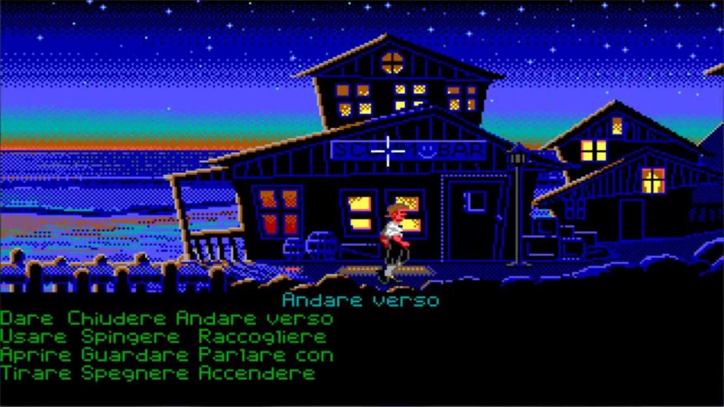 Il sistema di gioco di quelle avventure della LucasArts, era già molto solido e collaudato. Si avanzava su fondali a scorrimento, attraverso l’uso di un cursore mobile e della selezione del punto di interesse verso cui spostarsi. Quando con il cursore si passava su un oggetto interessante, sotto di esso appariva il nome e vi si poteva interagire. C’era poi una griglia di azioni che permettevano le interazioni con l’ambiente. Dal neutro osservare, al combinare gli oggetti, raccogliere, usare, parlare. Una serie di verbi che, usati nei modi giusti, ci permettevano di proseguire con gli step successivi della nostra avventura. Da questo punto di vista nulla di nuovo sotto al sole, dopo i successi di Maniac Mansion, Zan McKracken, Indiana Jones e l’ultima crociata e Loom. Monkey Island però ottiene un successo che nessuno dei predecessori aveva mai ottenuto.