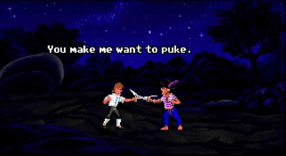 The Secret Of Monkey Island è uno dei videogiochi più importanti (e dissacranti) della storia, partorito da quel geniaccio di Ron Gilbert e diventato pietra miliare del genere, dando il via al periodo d’oro di Lucasarts Games. Non è da molti game designer ambientare un avventura grafica in una pixel art fantastica nel mondo caraibico, tratteggiando personaggi folli e situazioni impossibili.