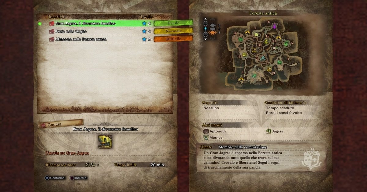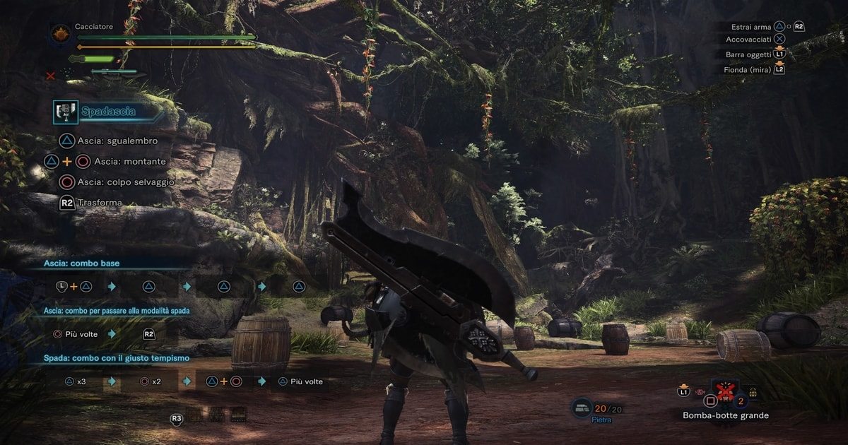 Prima di avviare le missioni disponibili, abbiamo deciso di fare una capatina alla Stanza di Addestramento. In questa sezione del gioco, probabilmente l’unica disponibile in modalità offline, è possibile prendere confidenza con i comandi e le meccaniche di gioco che, soprattutto per quelli che fossero al loro primo Monster Hunter, potrebbero risultare un po’ ostici da padroneggiare, soprattutto al primo impatto. In questo piccolo stage sarà possibile provare le varie armi di gioco, dalle armi bianche alla fionda, che ci tornerà utile molto più spesso di quanto si possa ritenere.