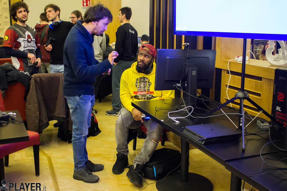 Ad accoglierci c’era una sala interamente addobbata con postazioni da gioco dotate di Playstation 4 collegate a dei potenti monitor BenQ Zowie RL2460, fortemente voluti dai partecipanti alla gara per via della totale assenza di latenza che caratterizza questo modello. Inoltre era anche presente una postazione dedicata allo streaming, in cui gli sfidanti hanno avuto la possibilità di dimostrare le loro capacità sia al pubblico in sala che online, tramite una diretta su Twitch presentata dal simpaticissimo streamer Gianluca Piscedda, in arte Pingu.