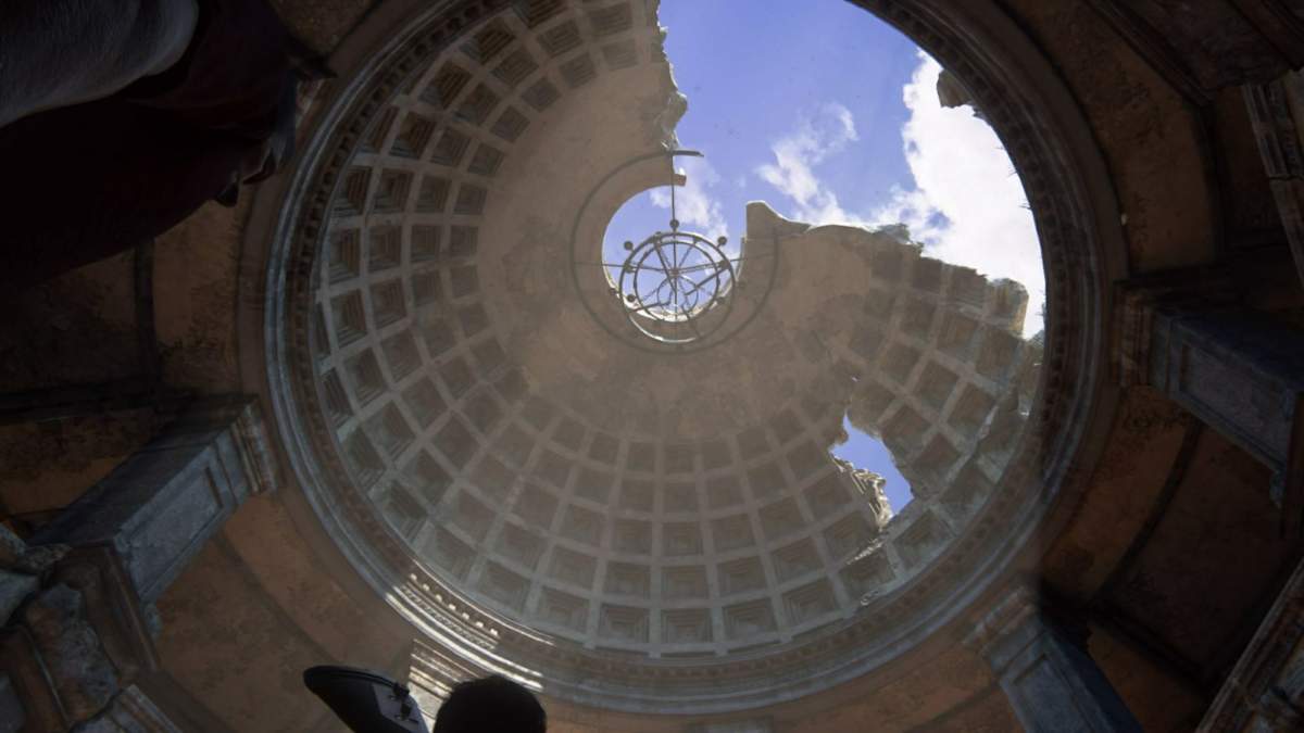 Cambiamo completamente location ora: Drake e “associati” si ritrovano nientepopodimenoche in Madagascar. E cosa si può trovare nel bel mezzo di un isola abbandonata a se stessa nell’Oceano Indiano, se non rovine sormontate da magnifiche cupole che quando c’entri pensi di essere nel Pantheon? Si, ok, è tutto rotto e cade a pezzi ma quel soffitto a cassettoni grida davvero al “plagio”… e scusatemi il termine. Anzi, giudicatelo voi cos’è.