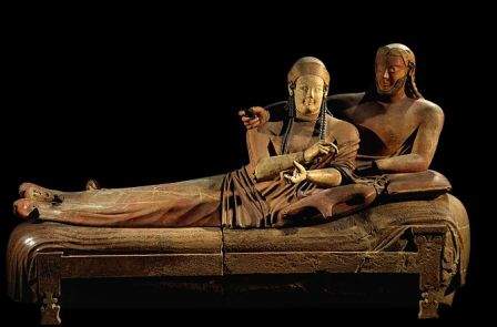 Ma non soffermiamoci su questo, perché durante le nostre “infiltrazioni” avremo modo di imbatterci anche in una serie di reperti gelosamente custoditi all’interno di prestigiose abitazioni che qualcosa ci ricorderanno… come il sarcofago che vedete al lato: un sarcofago che non dire ispirato al Sarcofago degli Sposi del Museo Nazionale Etrusco di