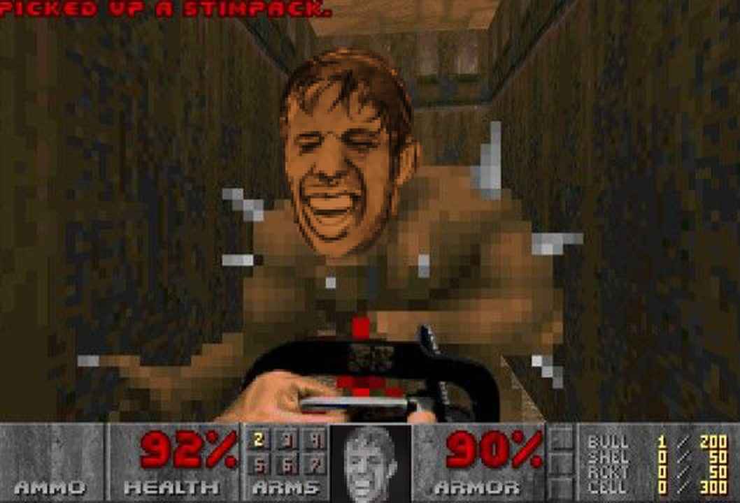 Potete ammirare una schermata di Doom 2 in cui ho swappato la faccia del demone e del Doomguy con quella di Adrian.