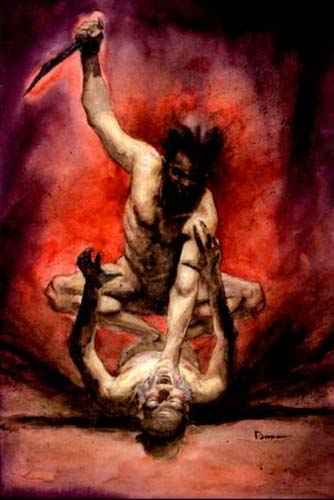 Caino uccide suo fratello Abele: dal suo punto di vista lo fa per amore, ma più ragionevolmente la causa è stata l’invidia o forse la gelosia, e viene esiliato.