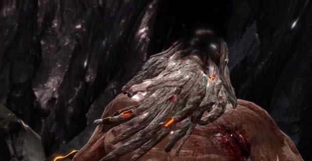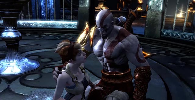 Il brutale assalto fisico e mentale priva Kratos della sua indomita forza di volontà, e lo vediamo soccombere: la furia dello spartano lascia il posto alla disperazione, e il buio cala nella mente del Fantasma di Sparta. Una luce, però si accende nell’oscurità: è lo spirito di Pandora, che adesso alberga dentro di noi.