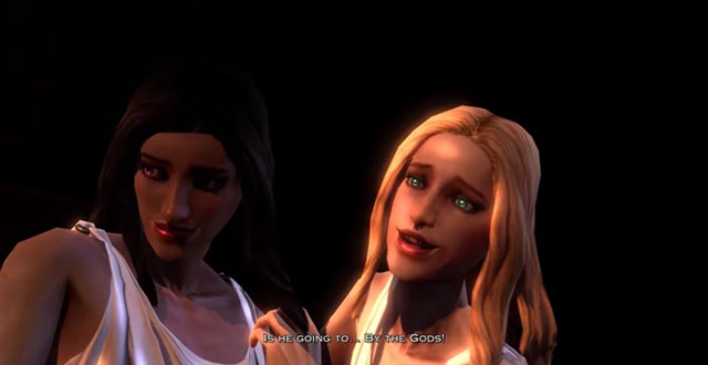 E le due sollazzevoli signorine? Sono un’invenzione di Santa Monica Studio (cioè Sony)? Giammai! Si tratta di Peitho e Paregoros, figlie del Titano Oceano e ancelle di Afrodite! Che dite, gli sviluppatori erano a conoscenza della cosa, o hanno inserito le due ancelle come uno spudorato fan service, così come la povera Principessa di Poseidone? Hmmm.