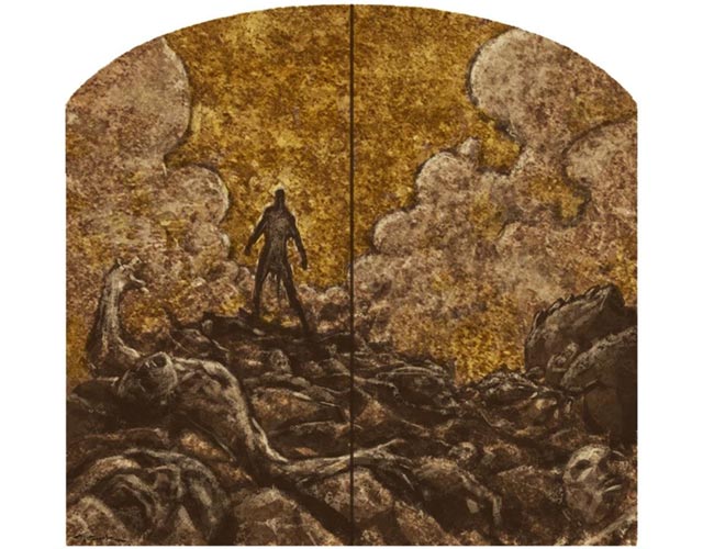Il secondo ci fa vedere un unico sopravvissuto che torreggia sui cadaveri di Titani e di quelli che sembrerebbero dèi e mortali.