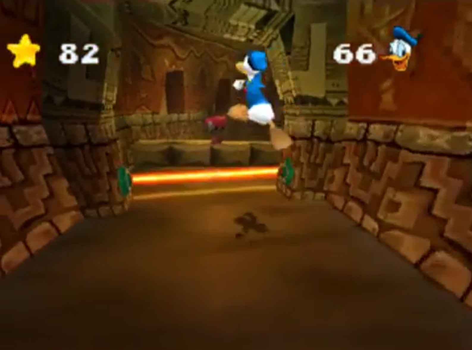 Ogni livello è accessibile salendo sulle pedane del laboratorio di Archimede, in modo molto simile a quanto avviene in Crash Bandicoot (si in questo articolo faremo molti parallelismi con i giochi di Naughty Dog). In ogni quadro dovremo recuperare dei globi di energia saltando su varie piattaforme ed evitando i nemici. Paperino potrà essere colpito due volte: la prima volta perderà le staffe e si infurierà. Questo status gli permette di prendere a pugni i nemici per un breve periodo di tempo. Venendo colpiti la seconda volta perderemo una delle cinque vite iniziali. Potremo facilmente recuperare una vita raccogliendo 100 stelle o più semplicemente l’icona con la faccia di Paperino. C’è poi un bicchiere di milkshake che permette di “curarci” nel caso siamo già stati colpiti una volta oppure ci darà un periodo di invincibilità.