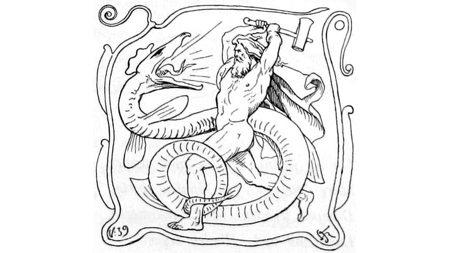 Non avendo ancora le idee chiare, Mímir ci viene in soccorso: ci riferisce che secondo l’antica profezia sul Ragnarǫk ci sarà un secondo scontro fra Thor e il Miðgarðsormr, e quest’ultimo verrà colpito così forte che Yggdrasill verrà danneggiato, e Jörmungandr verrà inviato indietro nel tempo… cioè al momento del primo scontro con il portatore di Mjöllnir. Lo so, lo so, i viaggi nel tempo e i paradossi temporali sono sempre confusi.