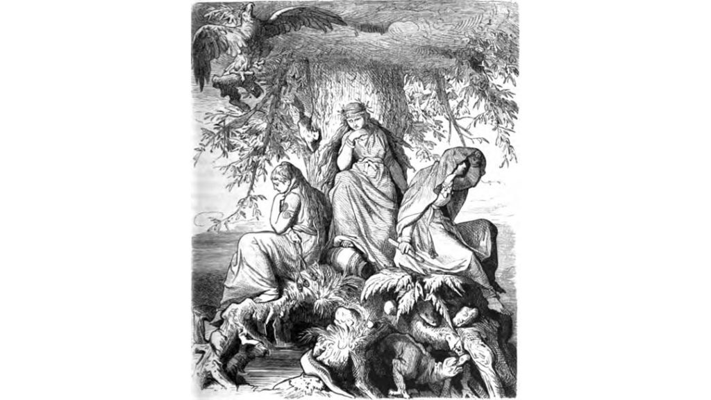 Nell’Edda in prosa di di Snorri Sturluson le Norne vengono, in un certo senso, assimilate alle Moire e alle Parche; diventano tre donne di età differenti, e cioè: