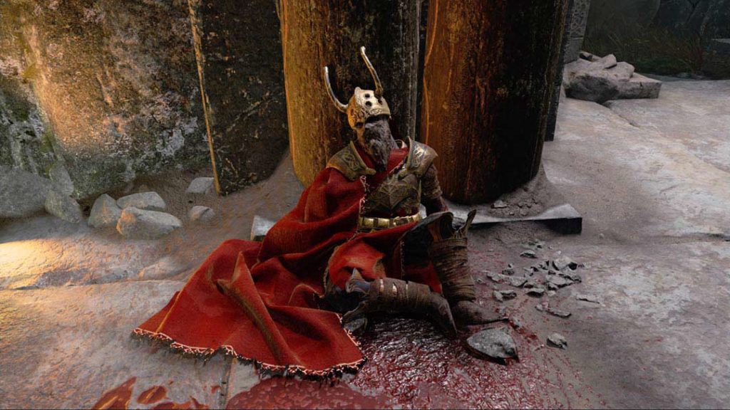 Non riuscendo a trovare il terzo elemento, si mise in viaggio e finì per installarsi a Konunsgard, dove per sua sfortuna venne ucciso da alcuni Hel-Walker; ironia della sorte, proprio questo Sacrificio Supremo, cioè la sua morte, era il terzo ingrediente necessario per creare l’armatura definitiva, che ben presto trova posto nell’inventario di Kratos e Atreus.