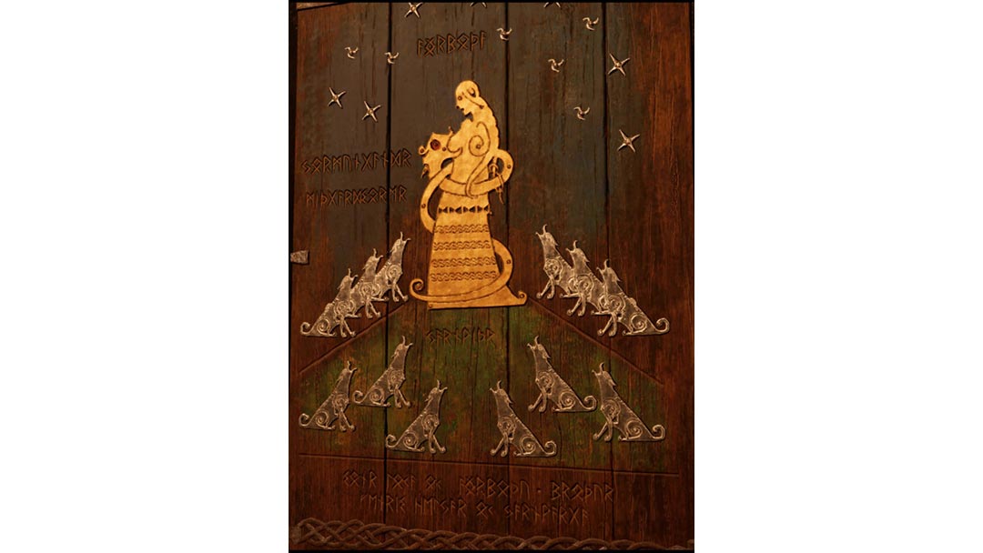In base alla traduzione dell’utente Reddit Kid_Karbon, infatti, il primo gruppo di rune sulla parte di murale coperta dal drappo rosso dovrebbe narrare dell’ossessione di Óðinn per l’arrivo del Ragnarǫk, dei suoi sforzi per ritardarne la venuta e dell’opposizione di Týr; il secondo racconta della creazione di un potente artefatto, probabilmente Mjöllnir, affidato a Thor per aiutarlo nella missione di eliminazione degli oppositori di Óðinn (e quindi gli Jötnar).