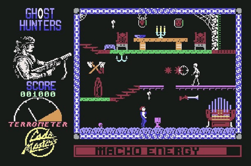 I livelli di Ghost Hunters, videogioco disponibile su Amstrad, Commodore 64 e ZX Spectrum, erano schermate fisse collegate tra di loro molto simili negli sprite e nella loro struttura a quelle presenti nei classici giochi platform dell’epoca, tra i quali Donkey Kong. Tutto però era visivamente più lugubre, con stanze infestate da spettri che potevamo eliminare con una mitragliatrice anti-fantasma. Il giocatore poteva avvalersi di una sola vita, mentre la caratteristica più interessante del titolo era la presenza del Terror meter che aumentava con la presenza di alcuni tipi di non morti. Se non si era lesti ad eliminarli, la barra saliva al massimo portando il personaggio alla morte.