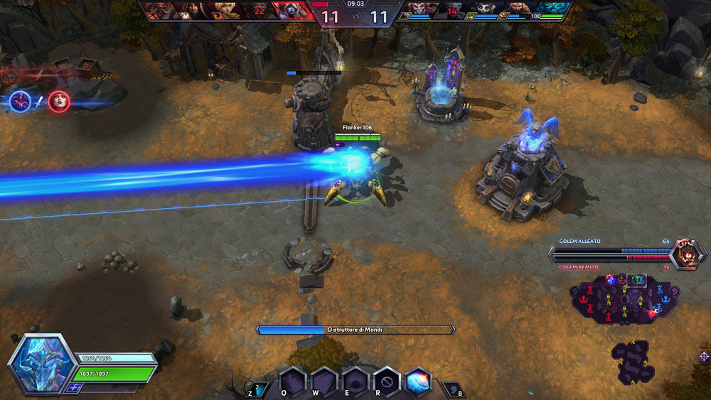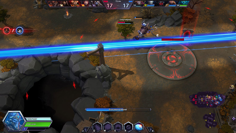 - [R2] Distruttore di Mondi: Dopo 0,5 secondi, incanala un potente raggio che percorre il campo di battaglia per 4 secondi e infligge 105 danni ogni 0,25 secondi alle unità nemiche colpite.