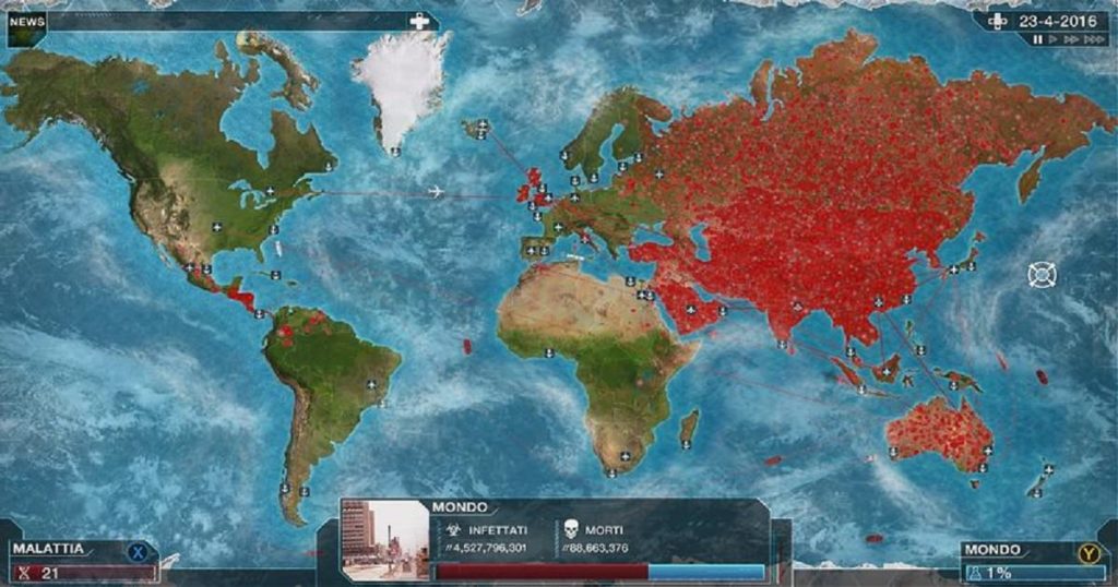 Ovviamente, non potevamo non iniziare questa lista con il gioco sulle pandemie per eccellenza: Plague Inc. Si tratta di un simulatore di epidemie nel quale il giocatore, partendo da un paese specifico, deve far evolvere un batterio, un virus o un fungo e diffonderlo in tutto il mondo. Il macabro obiettivo è quello di estinguere la razza umana.