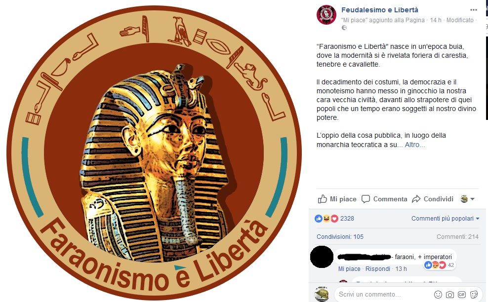 La famosa pagina facebook dedita alla devozione allo Imperatore e il passaggio di proprietà da vassallo a valvassore, dopo il lancio del loro gioco su Kickstarter, decide di convertirsi al politeismo e alle strutture piramidali della società egizia.
