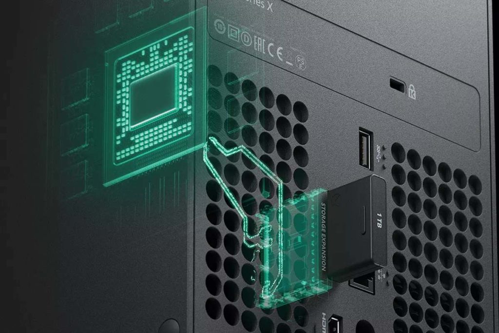 Xbox Series X arriverà sul mercato con un SSD NVME integrato da 1 terabyte ma sarà possibile aggiungerne un secondo comprandone un altro; questi SSD saranno venduti sotto forma di simil pendrive applicabili sul retro della console.