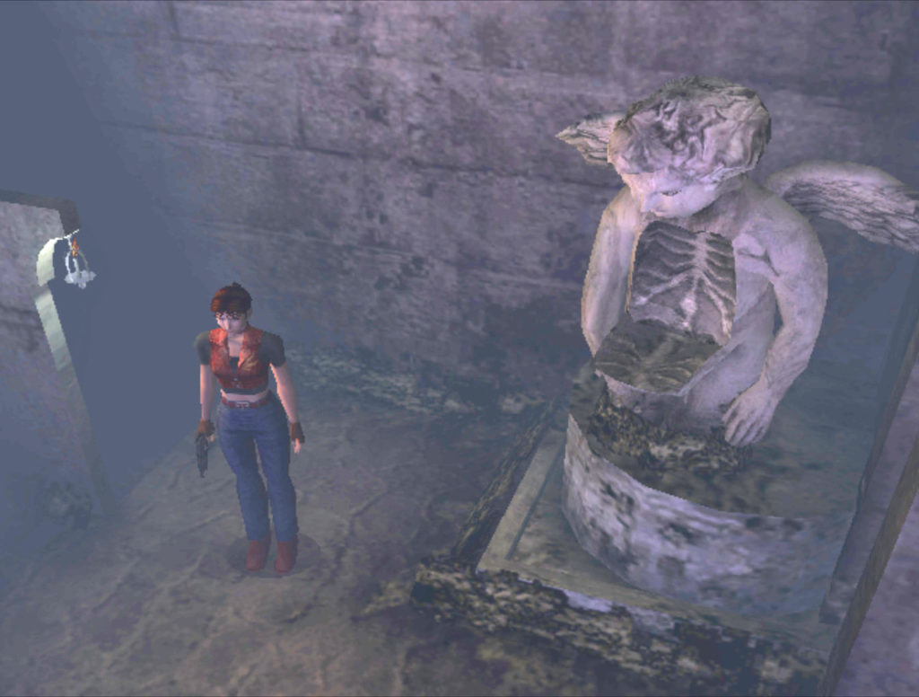 Nel gioco originale al suo posto troviamo una statua che rappresenta un angelo sventrato.