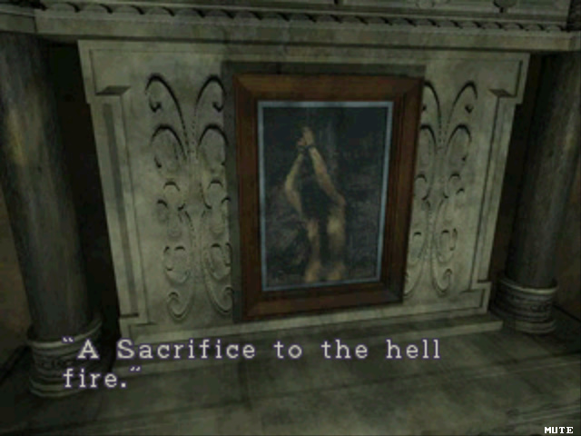 Uno dei quadri che si dimenticano meno facilmente, A Sacrifice to the hell fire (Un Sacrificio nel Fuoco dell’Inferno), è un quadro presente nella stazione di polizia di Raccoon City. Viene conservato in una stanzetta piccola e disordinata, sopra un caminetto, nonostante sembri avere molto valore per il comandante Irons. È stato proprio lui a volere quel quadro nell’edificio, arrivando persino a minacciare un ufficiale che ha osato toccarlo.