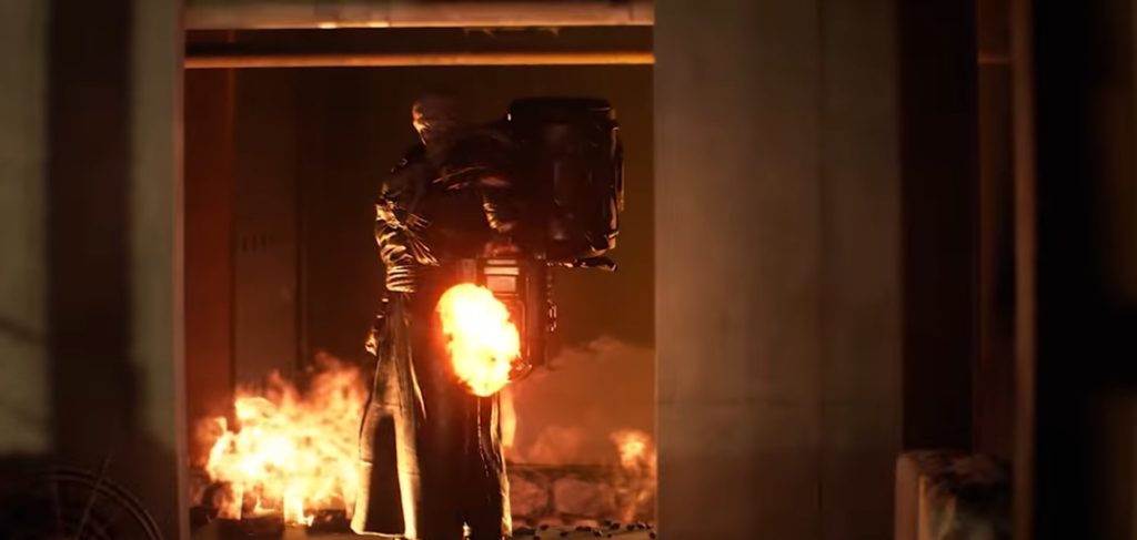 Una cosa molto interessante, diretta figlia della presenza del lanciafiamme in Resident Evil 3 Remake, è data dalla presenza del serbatoio dell’arma sulla schiena del nostro mostrone preferito.