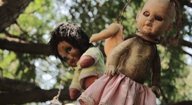 L’Isla de las munecas, cioè l’isola delle bambole, è situata a circa 20 km da Città del Messico, sul lago Teshuil ed è piena di bambole appese che ritraggono bambini sorridenti, una visione che, nell’insieme, risulta inquietante e sa mettere a disagio i visitatori.