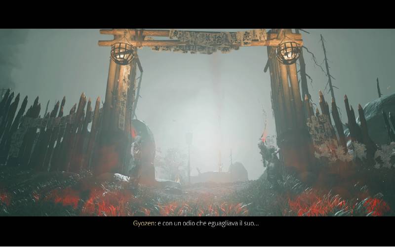 La prima cosa che ci ha entusiasmati è stato il cambio del setting e del tono del gioco. Facendo partire Leggende dal menù, la tavolozza di Ghost of Tsushima vira dai toni freddi ma leggeri dell’epopea di Jin a un rosso sangue dall’aspetto minaccioso e, soprattutto, dall’epopea storica a un dark-fantasy che affonda le radici nel folklore giapponese.