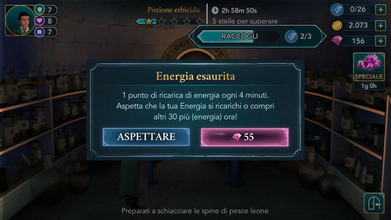 Farsi trascinare nell’uso del free to wait porta ad usarlo anche dove non ha senso, con risultati disastrosi come nel recentissimo Harry Potter: Hogwarts Mystery. Non solo le energie non aggiungono nulla alla narrativa di gioco, le fanno perdere significato. Il sistema del limite di tempo combinato alle energie con timer è ridondante, causa spesso di perdere parte dei progressi portando frustrazione, in un gioco che dovrebbe essere allegro e per i più piccoli.