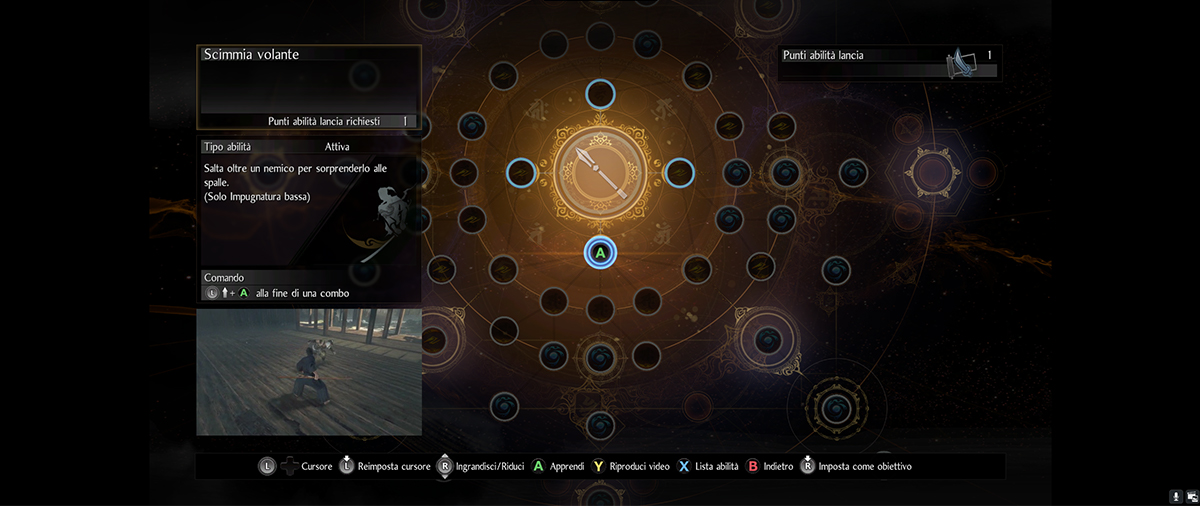 Gli altri invece li affronto tutti con la lancia in posizione bassa, il mio stile di combattimento preferito perché riesco a sfruttare una combo per saltare alle spalle dell’avversario dopo un raffica di colpi.