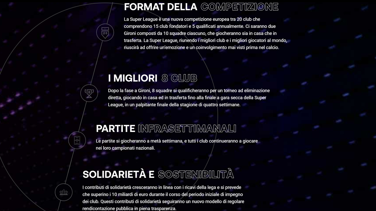 Non sembrerebbe nulla di così eclatante se non fosse che questa decisione è arrivata al di fuori del contesto UEFA, l’organo calcistico che gestisce campionati e tornei europei come la Champions League e l’Europa League, e se non fosse che la partecipazione a questa Super League avverrebbe in base a criteri legati al fatturato e la fama internazionale delle società, e non secondo meriti sportivi.