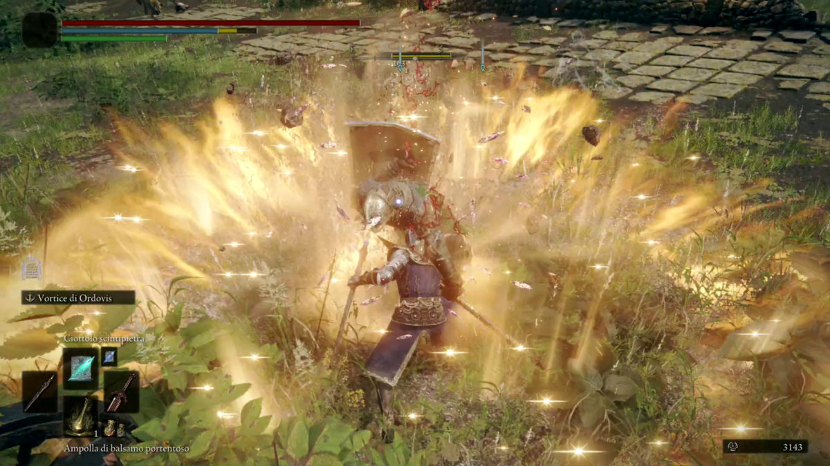 Un’altra nota dolente è la forte sensazione di già visto che ho sentito in vari punti di questo test. Innanzitutto interi set d’animazione sono completamente (o quasi) riciclati, ad esempio i Goblin di Giada identici agli Schiavi Vacui di Dark Souls 3 oppure le Sentinelle Albero che riprendono moltissimo Gyoubu Oniwa di Sekiro. Per quanto riguarda la storia di quest’ambientazione, ci sono davvero tanti riferimenti al sangue e alle anime, due concetti appartenenti a Bloodborne e ai Souls. Potrebbero essere omaggi autoreferenziali come il miracolo che evoca la mano artigliata della Chierico Belva bestia ecclesiastica, spero sia così. George R. R. Martin aveva dichiarato d’aver scritto le fondamenta di questo mondo, il passato pre-distruzione dell’Anello Ancestrale su cui si basa il presente che giochiamo ora. Per adesso ho qualche dubbio al riguardo.
