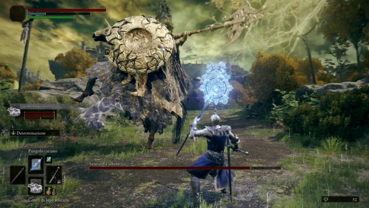 Solo proseguendo ed entrando negli spazi aperti di Sepolcride, la prima macro-area dell’Interregno, è possibile trovare il “boss tutorial dei vecchi tempi”, ossia la Sentinella albero. Ecco, qui devo dire che ho trovato subito quelli che potrebbero essere i primi classici problemi di traduzione dei giochi From Software. In inglese il boss si chiama Tree Sentinel, la cui traduzione più corretta sarebbe Sentinella dell’Albero, anche perché il boss non ha pressoché nulla di arboreo ed è chiaramente un cavaliere vagante che fa da guardia all’Albero insieme ad almeno un altro suo simile visto nei trailer. Solo in futuro capiremo se la traduzione italiana sarà davvero problematica o se potremo godere una buona localizzazione.