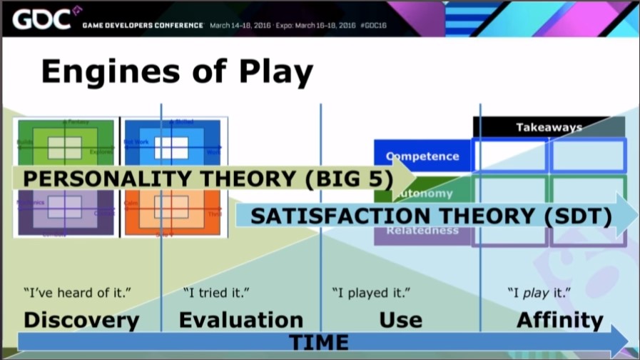 Jason VandenBerghe, in un talk della GDC del 2013 presenta il risultato delle sue ipotesi ( e ricerche): Individua una correlazione tra i tipi di giocatori e i tratti dei BIG 5, escluso il nevroticismo.