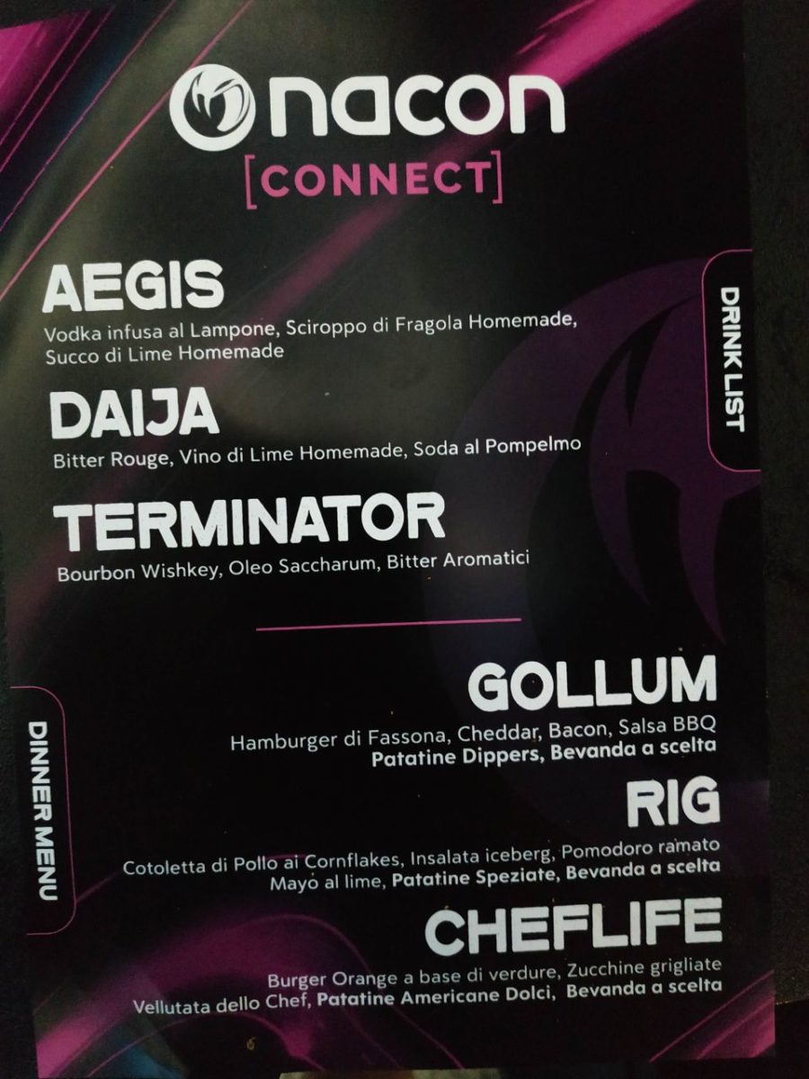 Le sorprese, comunque, non sono finite con il menu tematico. Dopo circa un’oretta dentro il MOBA abbiamo ricevuto una sacca con un biglietto e una sorpresa. Da una parte il biglietto recitava un semplice welcome to the Nacon Family, sempre gradito e dall’altra, invece abbiamo trovato delle RIG PRO Series 300, uno dei nuovi modelli di cuffie della linea RIG PRO.