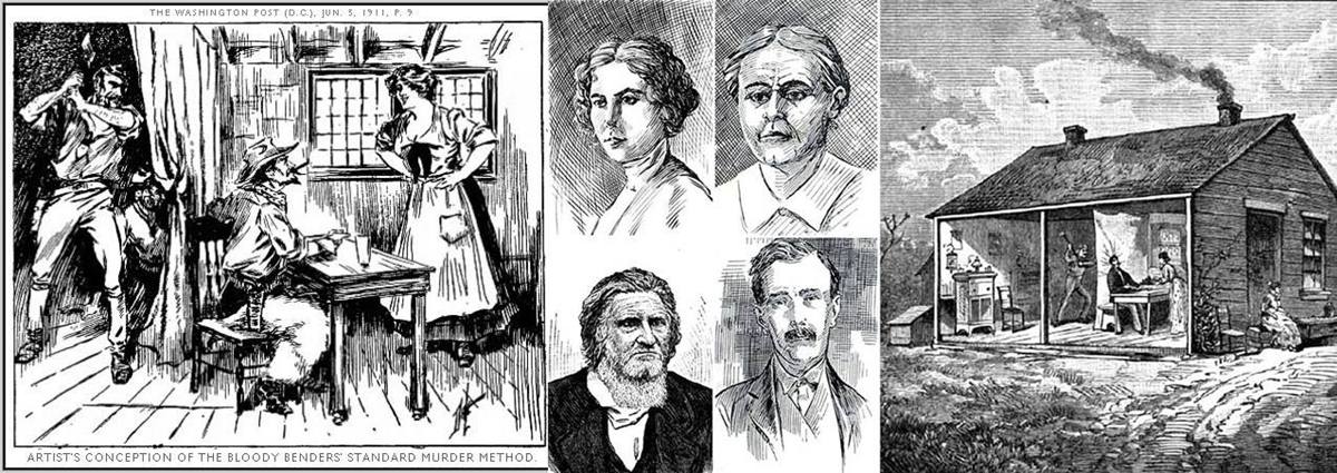 Alle spalle della tenda divisoria, nella zona dove alloggiava la famiglia Bender, venne trovata una botola che portava ad una cantina dalla quale proveniva un forte e disgustoso tanfo, provocato dalla terra pregna di sangue. Nove corpi vennero trovati all’esterno della Wayside Inn, e tutti presentavano le stesse ferite: cranio sfondato e gole tagliate, ma, successivamente, alla famiglia vennero attribuiti oltre 20 omicidi.