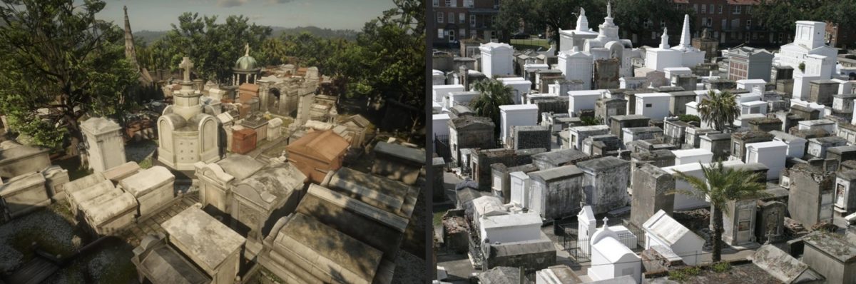 Altra forte somiglianza riguarda il cimitero di Saint Denise, davvero simile al più grande tra i cimiteri di New Orleans (quello di Saint Louis).