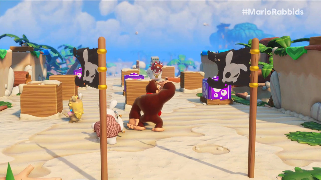 Donkey Kong appare sul palco della Ubisoft, segno che la collaborazione tra Nintendo e Ubisoft è stata positiva e lascia lo spazio per un futuro di collaborazioni tra Nintendo e Ubisoft. Rabbits e Donkey Kong insieme per celebrare l’anniversario dell’uscita dell’omonimo videogioco. Ecco presentato quindi un nuovo DLC di Mario + Rabbids Kingdom Battle: Donkey Kong Adventure che sarà disponibile dal 26 giugno.