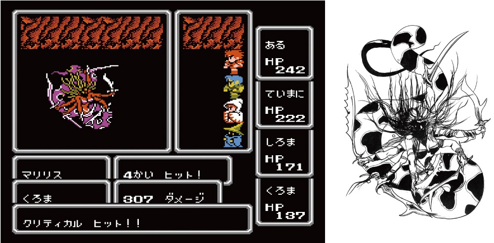 Il motivo? Semplicemente non avevano il tempo per ricostruire gli elementi sviluppati prima dell’arrivo di Amano. Nonostante tutto, grazie agli iconici design dei mostri, l’inconfondibile stile dell’illustratore giapponese riesce a funzionare anche riprodotto con una manciata di pixel, entrando di prepotenza negli schermi e nell’immaginario dei videogiocatori di tutto il mondo.