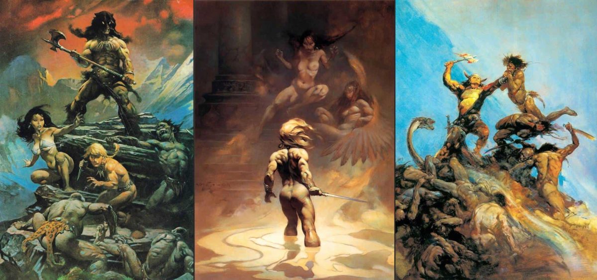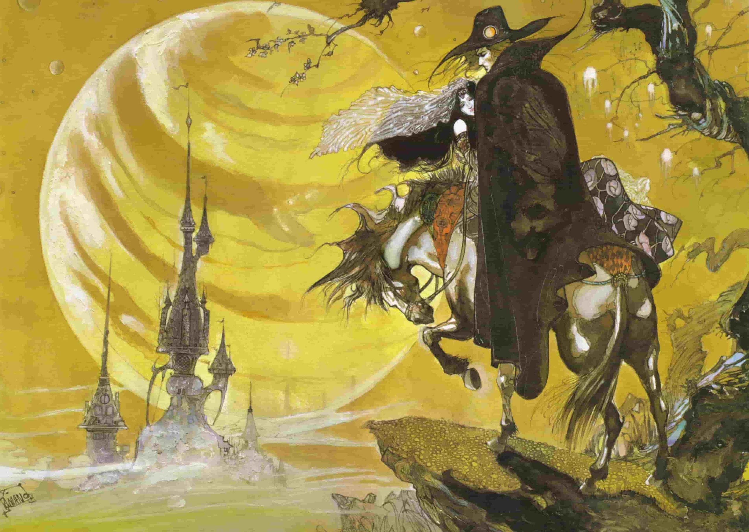 Ma un nome che non possiamo evitare di citare, assolutamente fondamentale per il percorso artistico di Amano, è l’illustratore statunitense Frank Frazetta (1928-2010), figura importantissima per aver definito l’immaginario di Conan Il Barbaro e di conseguenza l’intero genere sword and sorcery. Poter mettere gli occhi sui mondi, le creature e i personaggi scultorei creati da Frazetta, genererà in Amano quasi un ossessivo interesse per l’estetica fantasy, portandolo da lì a poco a lavorare quasi esclusivamente su questo tipo di immaginari, perfetti per inserire senza limiti tutte le suggestioni stilistiche catturate fino ad allora.