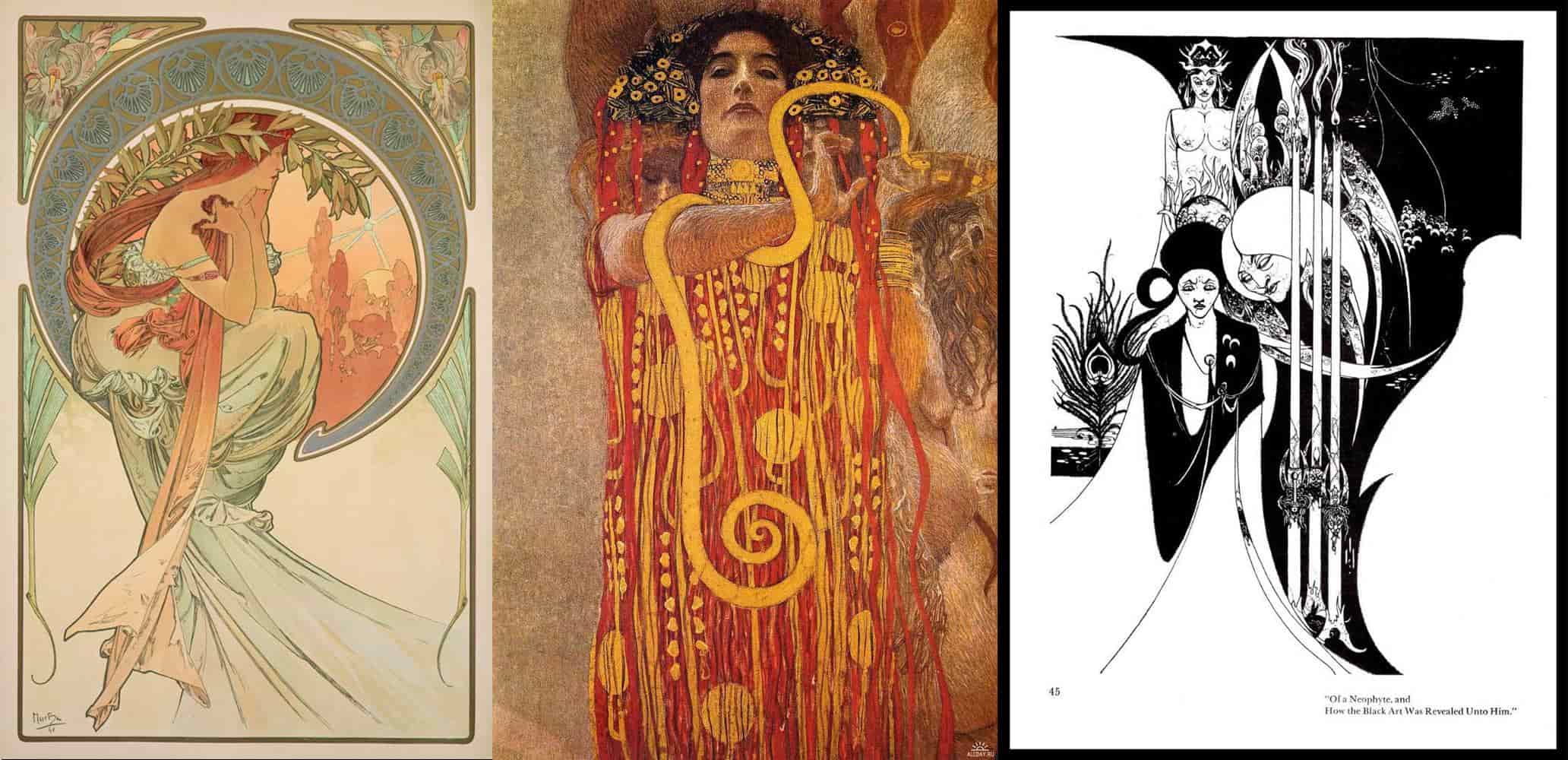 Tra i movimenti artistici che toccano più nel profondo il tratto dell’illustratore troviamo sicuramente l’Art Nouveau, da cui assimila la spettacolarità della natura e le tipiche linee dinamiche ornamentali. In particolare si riscontrano delle forti somiglianze con alcuni grandi nomi legati al movimento, come Alfons Mucha, Aubrey Beardsley e Gustav Klimt. Artisti dell’Art Nouveau che furono a loro volta influenzati, come Van Gogh e lo stesso Amano, dalle sgargianti stampe ukiyo-e diffuse in Giappone a partire dal periodo Edo, opere che ancora oggi riempiono le gallerie d’arte di tutto il mondo.