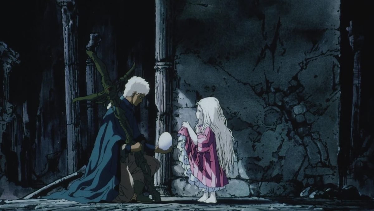 Il film esce nel 1985 con il titolo di Angel’s Egg e si rivelerà uno dei prodotti più autoriali ed ermetici del regista giapponese. Caratterizzato da lunghe sequenze, lente e silenziose, Angel’s Egg è ambientato in un mondo post-apocalittico dotato di tinte fantasy: una dimensione oscura ed esoterica, permeata di riferimenti biblici, con atmosfere fiabesche, cupe e cariche di spietato cinismo.