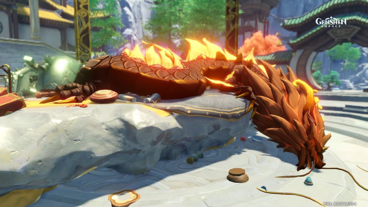 Dopo un’intensa battaglia, Childe evoca Osial, Signore del Vortice (una specie di gigantesco hydra acquatico), utilizzando i Sigilli preparati dai Fatui. Con l’aiuto degli Adepti, dei Qixing (cioè le sette stelle di Liyue che la governano – tra i quali troviamo anche Ninguangg e Keqing) e della Viaggiatrice, l’antica divinità viene sconfitta. Poco dopo, si scopre che Zhongli è l’Archon Geo dei contratti e ha deciso di dare la sua Gnosi liberamente a La Signora stipulando un misterioso patto con la Tsaritsa (capo dei Fatui e regina di Sheznaya). Il desiderio più grande di Zhongli è confondersi con la gente comune, perciò aveva inscenato la propria morte ed è quindi possibile che abbia semplicemente concesso la Gnosis in cambio della salvaguardia di Liyue.