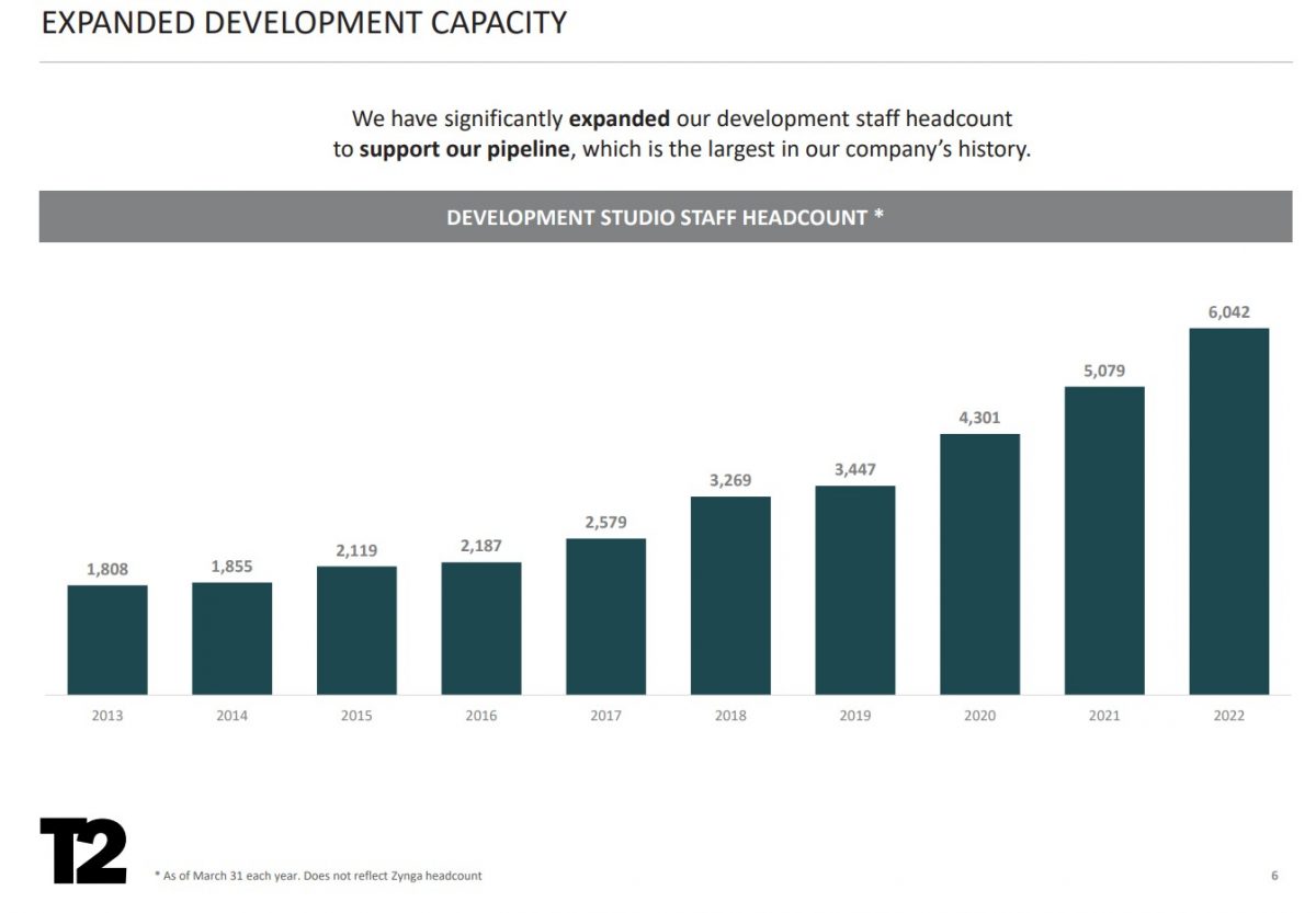 Detto questo, Zelnick al contempo si assume la responsabilità dei risultati non eccezionali e annuncia tagli di spesa e riorganizzazioni aziendali per accumulare un risparmio annuo di 50 milioni, le quali prevedono anche dei licenziamenti di personale, anche se promette che non saranno calate come la mannaia del macellaio ma localizzate con la precisione del chirurgo. In questo l’azienda si allinea alla politica di ridimensionamento della forza lavoro messa in atto da un po’ tutti i maggiori player del mercato (qui ho parlato di Microsoft, Unity e Google), a fronte della contrazione dello stesso avvenuta a partire dalla fine della fase acuta della pandemia.