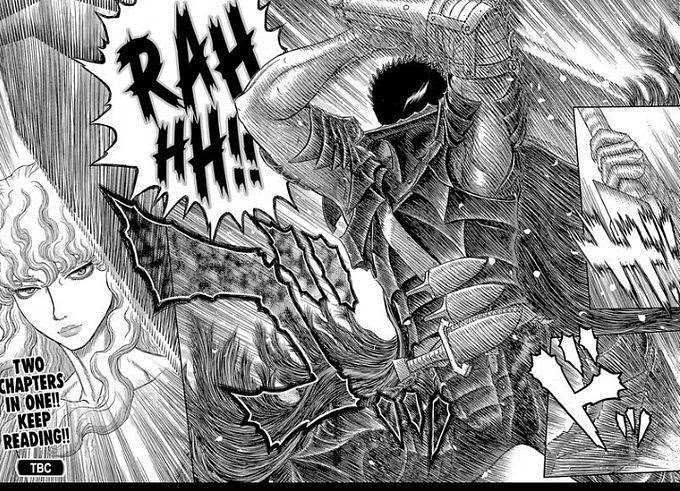 Nell’ultimo capitolo disegnato e scritto direttamente da Kentaro Miura, il 365, abbiamo assistito alla ricomparsa di Grifis. Gatsu, Casca e tutti i nuovi compagni che abbiamo imparato a conoscere, si trovavano sull’isola degli Elfi, un’isola magica in cui il tempo scorre diversamente e che, a detta di Pak, sarebbe stata il luogo ideale per far tornare Casca com’era prima dell’Eclissi.