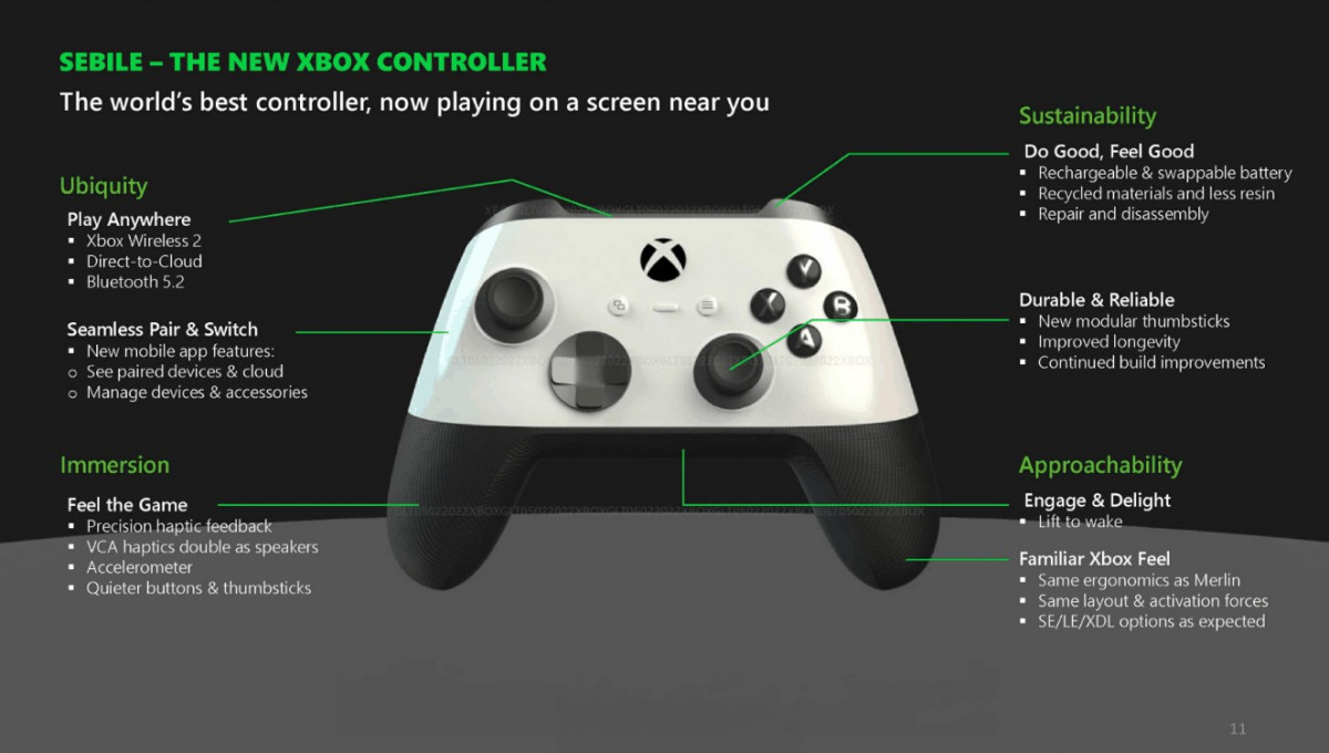 Microsoft ha messo a punto anche una nuova versione del controller, compatibile tanto con Brooklin quanto con Ellewood, oltre ad essere retrocompatibile con le attuali versioni di Series X|S. Ecco le principali novità riportate dal documento: