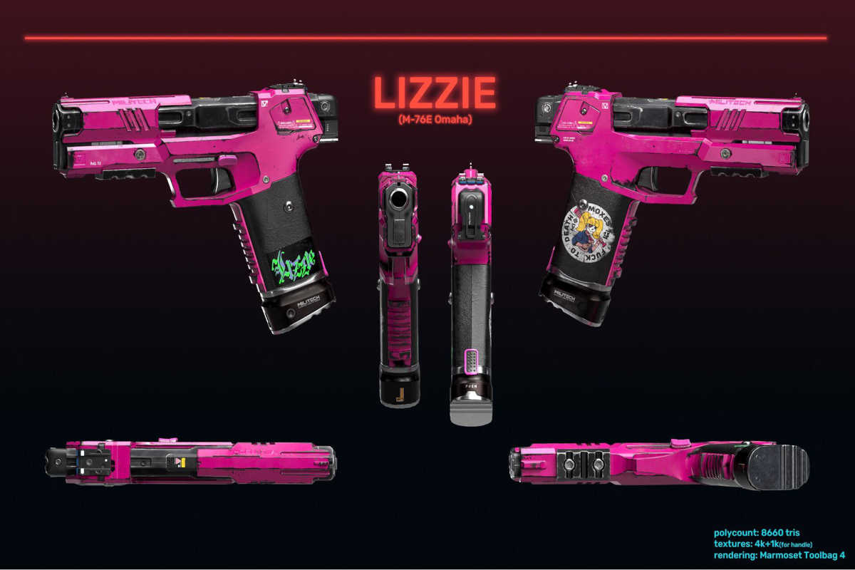 Lizzie è un’altra pistola tecnologica, che spara raffiche di quattro proiettili ad ogni sparo, al costo di una singola munizione, dunque niente paura, non dovrete ricaricarla ossessivamente ogni secondo. Quando carica al massimo, le raffiche della Lizzie infliggono grandissimi danni, a patto che si riesca a controllare il rinculo.
