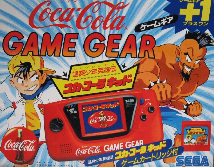 Coca-Cola Kid è un’avventura ignobile del 1994 per Game Gear, anche questa esclusiva per il mercato nipponico (amici del Sol Levante, perché?). L’apertura è già un sogno: prima il logo di SEGA intonato dal celeberrimo coro, subito dopo una bella schermata rossa, il suono a 8-bit della cochina bella fresca che scende giù nel gargarozzo a là Giovanni Storti, e la dicitura Enjoy Coca-Cola. Sono colpito, ammirato, nauseato. Non credo ci sia bisogno di dilungarmi sui dettagli della trama, che vede un cattivo con la cresta e per protagonista la mascotte Cokey, ragazzino che più anni ’90 non si potrebbe con il suo skate e il suo cappello con la visiera all’indietro.